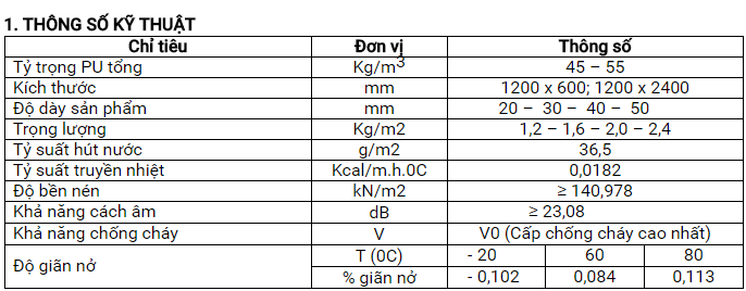 Cách nhiệt, chống nóng, chống mối mọt, chống ẩm mốc, nhẹ, dể thi công lắp đặt, thân thiện môi trường