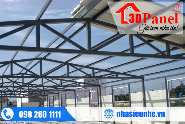 - Mái nhà lắp ghép: sử dụng Tôn lợp mái (Tôn + PU + PP) hoặc (Tôn + xốp + Tôn), cách âm, cách nhiệt.